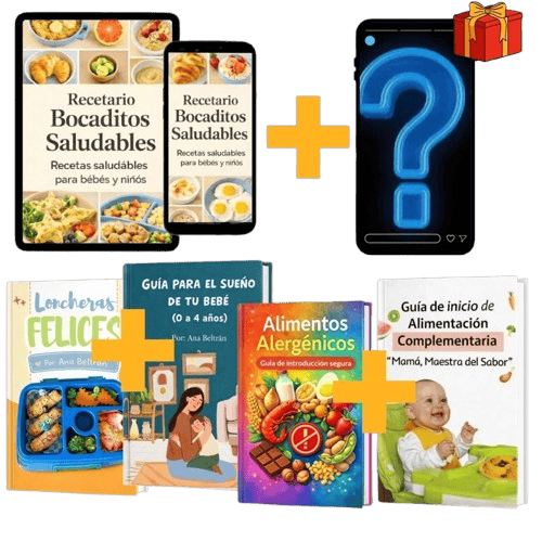 ¡Llegó el momento de acabar con esa inseguridad y frustración! Te presento “Bocaditos Saludables”, la guía definitiva con más de 130 recetas fáciles y nutritivas para bebés y niños de 6 meses a 5 años.
